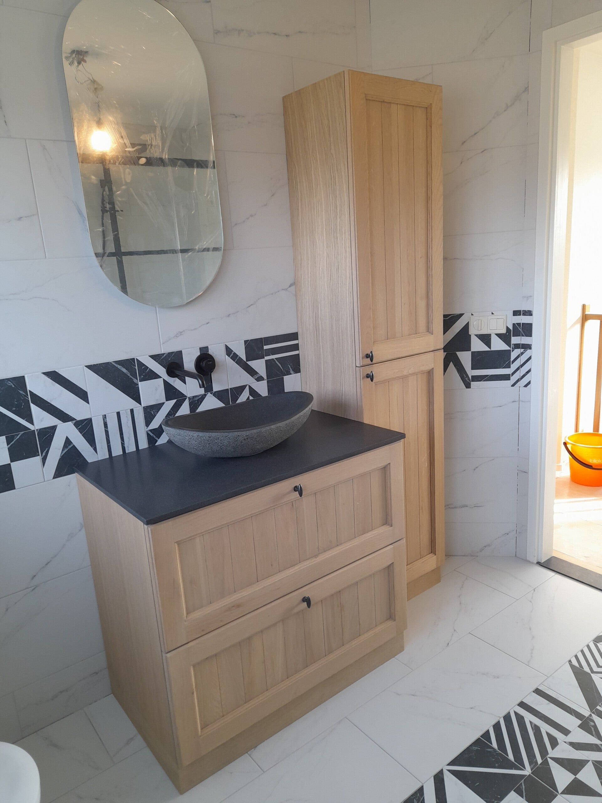 Dan kan het tegelen van de wanden en de vloer beginnen.